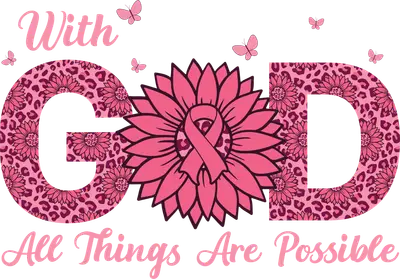 Pink Sunflower Breast Cancer Awareness DTF Transfer | With God All Things Are Possible