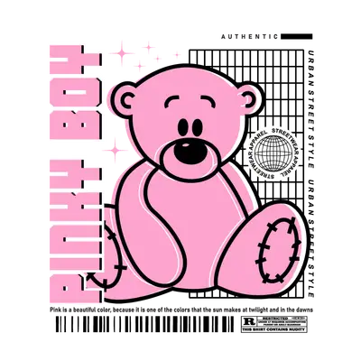 Pink Teddy Bear Streetwear DTF Transfer | Urban Hypebeast Ready to Press