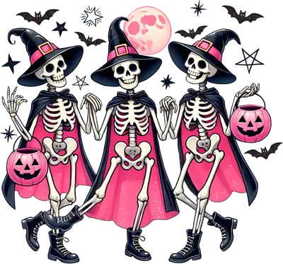 Pink Witch Skeletons Halloween DTF Transfer | Spooky Squad Goals