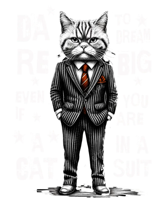 Pinstripe Suit Cat DTF Transfer: Dare to Dream Big Motivational Design