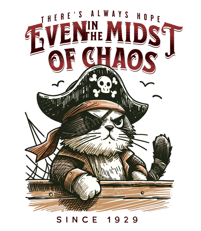 Pirate Cat 'Hope in Chaos' DTF Transfer | Motivational Vintage Design