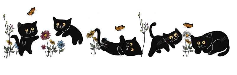 Playful Black Cats & Butterflies Floral DTF Transfer