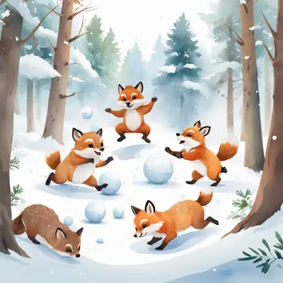 Playful Foxes Snowball Fight DTF Transfer Winter Holiday Apparel