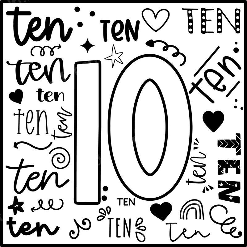 See allThis charming DTF transfer features the number "10" prominently displayed, surrounded by the word "ten" in an array of delightful and varied typographic styles. Accented with whimsical hearts, stars, squiggles, and dots, this playful design radiates a celebratory and fun vibe. It’s a versatile and eye-catching ready to press transfer that adds a personalized touch to any garment or accessory, making it perfect for marking a special milestone. This unique heat press design is ideal for anyone celebrating a 10th birthday, a decade of achievement, a 10-year anniversary, or any significant "ten" related event. It makes a fantastic custom gift for children, teens, or adults who are reaching this special numerical milestone. Imagine personalized t-shirts for a birthday party, matching hoodies for a sports team's 10th season, or unique tote bags for a special gathering. Applying this high-quality iron on transfer is incredibly simple. Our DTF transfers are compatible with cotton, polyester, and blends. For best results, use a heat press at 300-325°F for 15 seconds with medium pressure, then cold peel. A household iron can also be used. No tedious weeding is required, making your customization project quick and enjoyable. Experience professional results with our durable and vibrant heat press transfer. Each print boasts rich colors, excellent detail, and a soft-to-the-touch finish that won't crack or peel. Crafted on premium DTF film with a strong adhesive, this apparel transfer ensures long-lasting wear and a professional look for all your custom creations.
