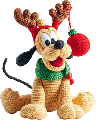 Pluto Christmas Reindeer Crochet Style DTF Transfer - Holiday Dog