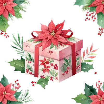 Poinsettia Christmas Gift Box DTF Transfer | Festive Holiday Ready to Press Design
