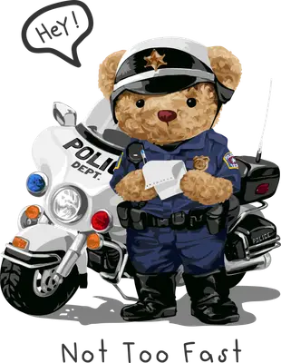 Police Bear Motorcycle DTF Transfer - Not Too Fast Funny Cop Design