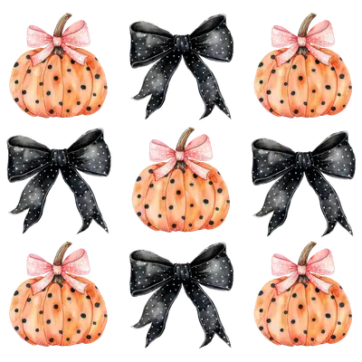 Polka Dot Pumpkin & Bow DTF Transfer | Cute Halloween Fall Design