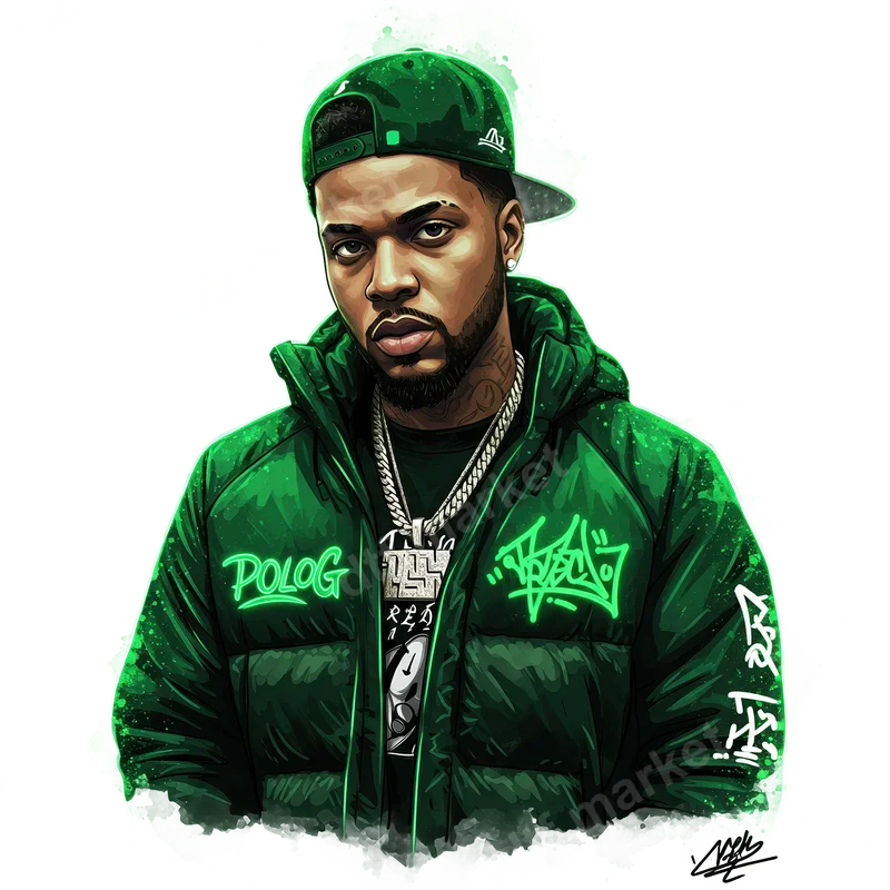 Polo G Rapper Green Puffer Jacket DTF Transfer | Hip Hop Ready To Press