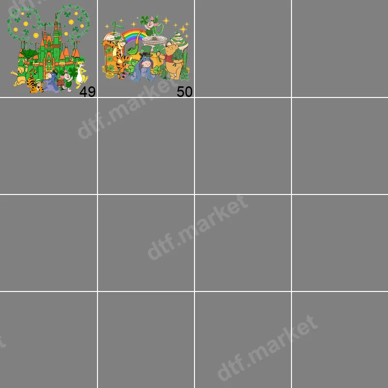 See allDive into the whimsical world of the Hundred Acre Wood with this charming Pooh & Friends St. Patrick's Day DTF transfer. This vibrant design features Winnie the Pooh, Eeyore, Tigger, and Piglet celebrating the festive holiday amidst shamrocks, a rainbow, and a pot of gold. It's a delightful way to bring luck and cheer to your apparel, making it a perfect ready to press option for easy customization. Ideal for Disney fans of all ages, this playful heat transfer is perfect for St. Patrick's Day parades, family gatherings, or spreading some festive joy. Create matching shirts for family outings, unique gifts, or a special personalized item. It’s also a fantastic iron on transfer for crafters looking to add a touch of holiday magic to their creations. Applying this high-quality t-shirt transfer is a breeze, whether you use a professional heat press or a household iron. It adheres beautifully to cotton, polyester, and various blends. For best results with a heat press, apply at 300-325°F for 15 seconds with medium pressure. Enjoy the convenience of a design that requires no weeding, saving you time and effort. Experience superior durability and a soft-to-touch feel with this premium DTF transfer. The colors are incredibly vibrant and resistant to cracking or fading, ensuring your customized apparel looks fantastic wash after wash. Crafted with professional-grade DTF film and strong adhesive, this direct to film transfer provides a long-lasting finish that feels integrated with the fabric.