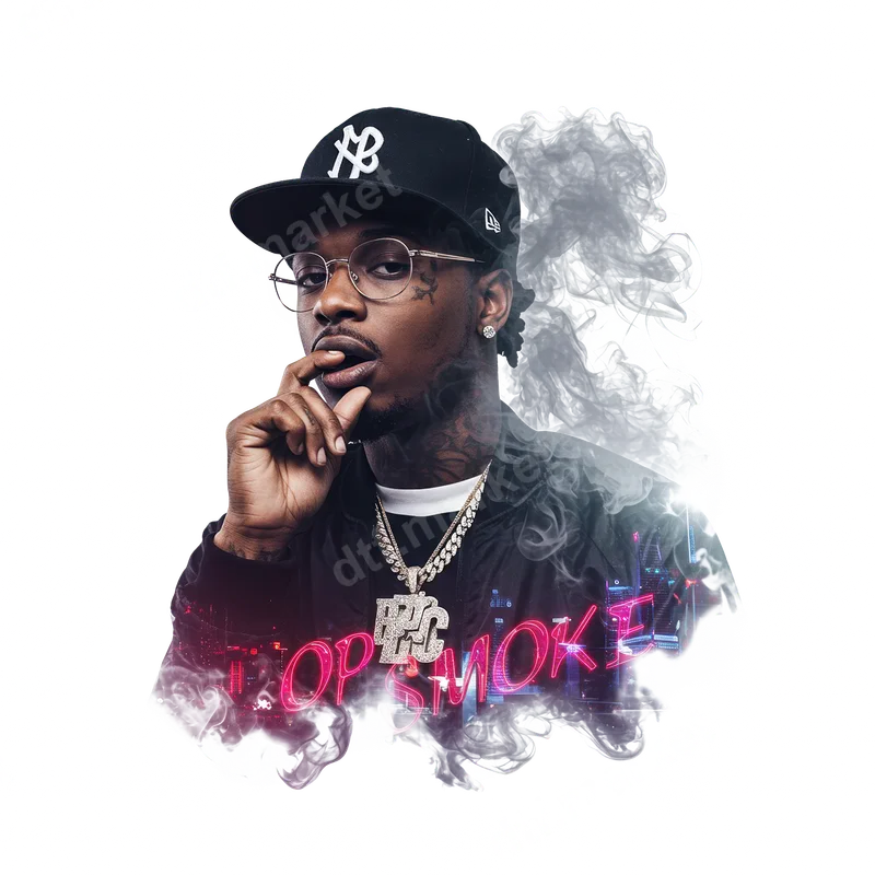 See allThis vibrant Pop Smoke DTF transfer brings a powerful tribute to the King of Drill. The design features the iconic rapper, Pop Smoke, captured with a cool, contemplative expression, framed by dynamic smoke effects and a subtle neon-lit city skyline. His name "POP SMOKE" glows in bold neon script, giving the entire image a modern, edgy, and unforgettable streetwear aesthetic. This high-quality, ready to press transfer is perfect for honoring a music legend. This unique Pop Smoke design is ideal for hip-hop fans, streetwear enthusiasts, and anyone looking to express their appreciation for a modern music icon. It’s perfect for creating custom apparel for concerts, music festivals, or everyday wear. Use it to personalize gifts for birthdays, holidays, or as a special memorial piece for friends and family who admire Pop Smoke’s legacy. This versatile heat transfer makes a bold statement. Our DTF transfers are incredibly versatile and can be applied effortlessly to a wide range of fabrics, including cotton, polyester, and various blends. For best results, use a heat press at 300-325°F for 15 seconds with medium pressure, followed by a cool peel. Alternatively, a household iron can be used, making this an easy iron on transfer with firm, even pressure. Unlike traditional vinyl transfers, there's absolutely no weeding required, saving you time and effort. Experience superior quality with this professional DTF transfer. The colors are vibrant and true to the image, ensuring your finished garment stands out. These transfers are designed for exceptional durability, offering crack-resistant flexibility and a soft, smooth feel once applied. Our premium DTF film and strong adhesive ensure a lasting bond, creating a finished shirt design that looks and feels professionally printed.