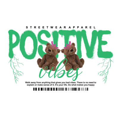 Positive Vibes Teddy Bear Streetwear DTF Transfer