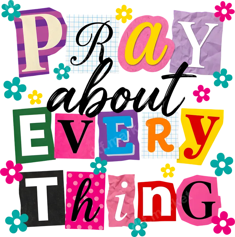 Pray About Everything DTF Transfer | Colorful Faith-Based Collage Design