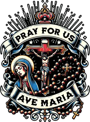 Pray For Us Ave Maria Jesus Mary Rosary DTF Heat Transfer