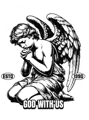 Praying Angel DTF Transfer - Blessed God With Us | Religious Heat Transfer