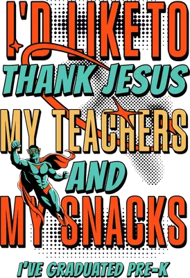 Celebrate a monumental milestone with our hilarious Pre-K Graduation Thank You DTF transfer! This vibrant design features bold, comic book-style lettering that reads 'I'D LIKE TO THANK JESUS MY TEACHERS AND MY SNACKS I'VE GRADUATED PRE-K', alongside a cool superhero rocking sunglasses. The pop-art aesthetic, complete with halftone dots and dynamic starbursts, makes this a standout piece. It's a fun and lighthearted way to commemorate a big achievement, delivered as a high-quality, ready to press transfer that brings instant personality to any item. This unique apparel transfer is perfect for proud parents, grandparents, or anyone celebrating a Pre-K graduate. Imagine this funny heat transfer design on a shirt for graduation day, a celebratory party, or as a thoughtful gift for the little superhero in your life. Small t-shirt businesses looking for popular, humorous designs will find this an excellent addition to their inventory. It's also an amazing choice for crafters creating custom keepsakes or family matching outfits for graduation photos and events, adding a touch of playful charm. Applying this heat press transfer is simple and hassle-free, suitable for cotton, polyester, cotton-poly blends, and even nylon fabrics. Achieve professional results using a heat press at 300-325°F for 15 seconds with medium pressure, or easily apply with a household iron. There's no tedious weeding required—just peel and press! It's perfect for creating custom t-shirts, cozy hoodies, playful sweatshirts, sturdy tote bags, charming pillow covers, adorable baby onesies, aprons, and cool denim jackets. For best longevity, wash inside out and tumble dry low. Our ready to press transfer boasts exceptional quality, featuring vibrant, full-color printing that captures every fine detail of the comic-style artwork. The result is a design that is crack-resistant, incredibly soft to the touch, and completely free from the heavy, stiff feel often associated with vinyl transfers. Each direct to film transfer is meticulously printed on premium DTF film, engineered with a strong adhesive backing to ensure professional, durable results every single time you press.