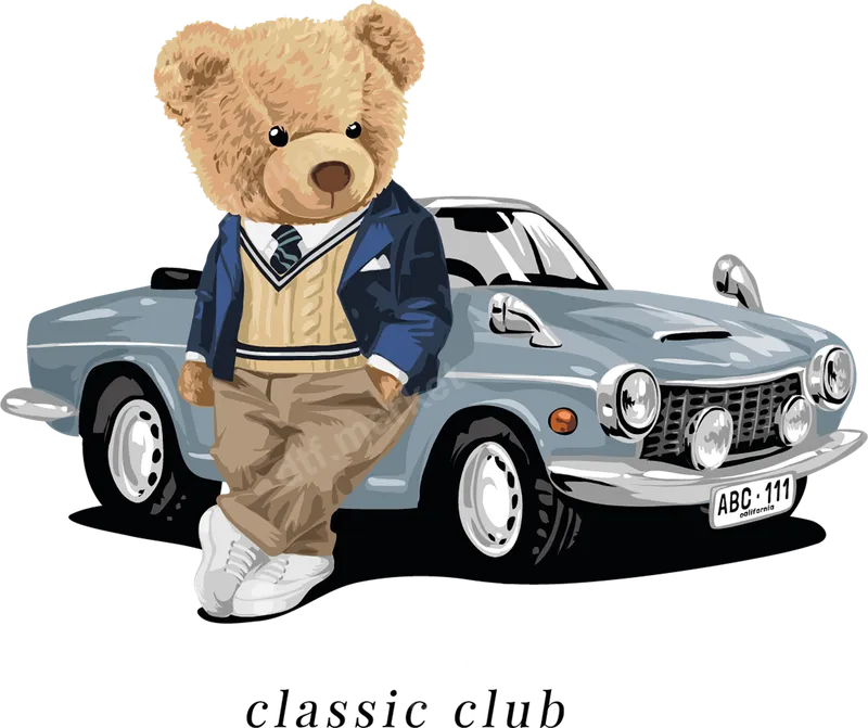 Preppy Bear Classic Car DTF Transfer | Vintage Club Style Apparel