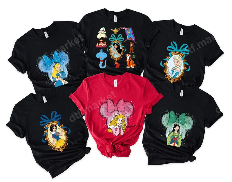 See allImmerse yourself in the enchanting world of fairy tales with our delightful collection of Princess character DTF transfers. This vibrant assortment features beloved animated icons like Alice in Wonderland, Elsa from Frozen, Mulan, Snow White, Aurora from Sleeping Beauty, and Jasmine with classic Aladdin characters. Each design captures whimsical charm and magic, perfect for bringing your favorite characters to life. These direct to film transfers arrive ready to press, simplifying your crafting process. This enchanting collection is perfect for Disney fans of all ages, from little princesses to nostalgic adults. Create unforgettable matching shirts for family theme park vacations, birthday parties, or themed gatherings. They make fantastic personalized gifts for kids, teens, and anyone cherishing these iconic stories. Whether celebrating a special occasion or adding a touch of magic to everyday wear, these designs will surely delight. Applying these high-quality heat transfers is a breeze, whether you use a professional heat press or a household iron. Our ready to press transfers adhere beautifully to cotton, polyester, and blends. For best results, use a heat press at 300-325°F for 15 seconds with medium pressure, then peel cold. Unlike traditional vinyl transfers, there's no weeding required, making custom t-shirt transfer projects quick and hassle-free. Experience the superior quality of our professional DTF film, designed for vibrant colors, exceptional durability, and a soft, smooth feel on any garment. These heat press designs are crack-resistant and hold up wonderfully through countless washes, ensuring your personalized apparel lasts. Transform ordinary shirts, hoodies, tote bags, and more into extraordinary custom pieces with these premium apparel transfers, delivering a professional finish every time.