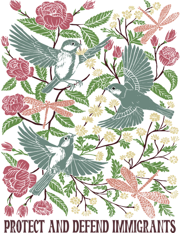 Protect & Defend Immigrants DTF Transfer | Vintage Birds & Floral Heat Press Design