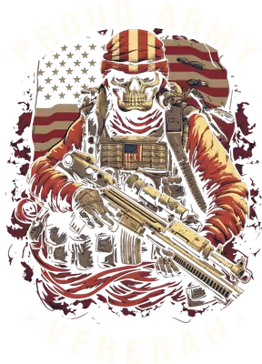Proud Army Veteran Skull DTF Transfer - Patriotic Military Heat Press Design