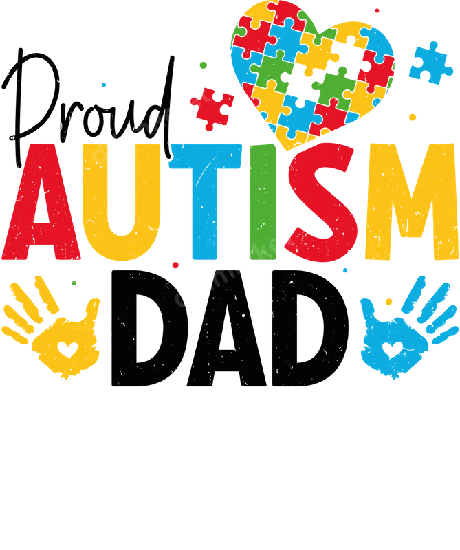 Proud Autism Dad DTF Transfer - Puzzle Heart & Handprints Design