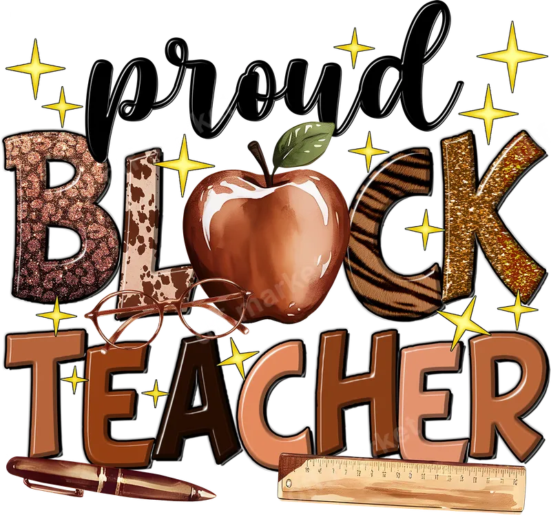See allCelebrate the dedication of educators with this vibrant 'Proud Black Teacher' DTF transfer. This eye-catching design features bold, multi-textured lettering for 'BLACK' – including shimmering glitter, rustic cow print, and wild tiger stripes – alongside a classic apple, eyeglasses, pen, and ruler, all surrounded by sparkling stars. It's a powerful statement piece, ready to press, celebrating the vital impact of Black educators. This heat transfer is perfect for personalizing apparel and accessories. This unique design is ideal for Black teachers, their colleagues, students, families, and school communities who want to honor their contributions. It’s an excellent choice for Black History Month, Teacher Appreciation Week, back-to-school events, graduation, or everyday pride. Create meaningful apparel for school events, staff gatherings, or a thoughtful present acknowledging the hard work and inspiration provided by Black educators. Applying this premium direct to film transfer is straightforward and hassle-free. Our iron on transfer works beautifully on various fabrics, including cotton, polyester, and cotton/poly blends, making it incredibly versatile for almost any garment. For best results, use a heat press at 300-325°F for 15 seconds with medium pressure, followed by a cool peel. This ready to press transfer requires no weeding, trimming, or layering, saving you time and effort compared to traditional vinyl options. Experience professional-grade quality with every print. Our DTF transfers boast incredibly vibrant colors, crisp details, and exceptional durability. They are designed to be crack-resistant, peel-resistant, and have a soft, lightweight feel once applied, ensuring maximum comfort and longevity. Made with high-quality DTF film and strong adhesive, this apparel transfer will withstand countless washes, maintaining its original brilliance and integrity. Transform your t-shirt, hoodie, or tote bag into a statement piece effortlessly.