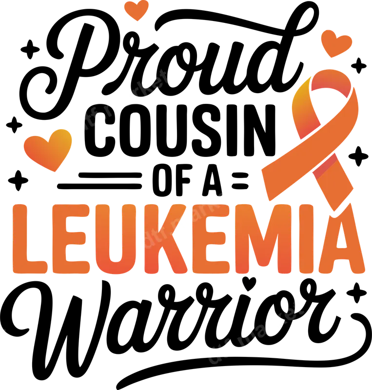 See allThis impactful DTF transfer proudly declares 'Proud COUSIN OF A LEUKEMIA Warrior,' featuring a vibrant orange awareness ribbon and accompanying hearts. The design combines bold black and white lettering with an eye-catching orange gradient for the word 'LEUKEMIA,' making a strong statement of support. This ready to press design is perfect for showing solidarity and raising awareness for those battling leukemia. Ideal for cousins wanting to honor their brave family members, this heat press design is perfect for Leukemia Awareness Month in September, charity walks, fundraising events, or as an everyday statement of support. It makes a thoughtful gift for any proud cousin looking to represent their warrior. Celebrate the strength and resilience of a loved one with this meaningful apparel transfer. Our premium DTF transfers are designed for effortless application on a wide range of materials, including cotton, polyester, and their blends. Achieve professional results with a heat press set to 300-325°F for 15 seconds with medium pressure, or easily apply with a household iron. Forget the hassle of weeding; this iron on transfer is ready to go straight from the film to your garment. Experience superior quality with our professionally printed DTF film. These transfers boast vibrant colors that pop, exceptional wash durability, and resistance to cracking and peeling, ensuring your message stays bold and clear. The soft-touch finish integrates seamlessly with fabric, providing a comfortable and lasting design that truly stands out. Get your custom transfer today and wear your pride.