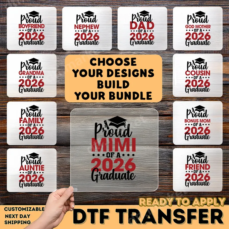 See allCelebrate the monumental achievement of your 2026 graduate with this heartwarming "Proud Mimi of a 2026 Graduate" DTF transfer. This vibrant design features a classic graduation cap icon paired with elegant typography, highlighting your special role and the graduating year in bold red. Our direct to film transfer is professionally printed and comes as a ready to press transfer, making it incredibly easy to customize your apparel. This design is perfect for grandmothers, grand-moms, or any proud Mimi looking to show their love and support during graduation season. Ideal for wearing to graduation ceremonies, senior year events, or celebratory parties, this heat press design also makes a thoughtful gift for any proud family member. Easily create custom matching shirts for the whole family to celebrate this significant milestone together. Applying this high-quality heat transfer is simple. It works wonderfully on a wide range of fabrics, including cotton, polyester, and various blends. For best results, use a heat press at 300-325°F for 15 seconds with medium, even pressure. This iron on transfer can also be applied with a household iron, although a heat press is recommended for professional results. Best of all, there's absolutely no weeding required, saving you time and effort. Crafted using premium DTF film and inks, this apparel transfer delivers exceptional durability and visual appeal. The colors are incredibly vibrant, resisting cracking and fading even after multiple washes. The finish is soft to the touch, ensuring comfort without the stiff feel often associated with other types of vinyl transfer. Get a professional-grade shirt design quickly and easily, celebrating your graduate in style.