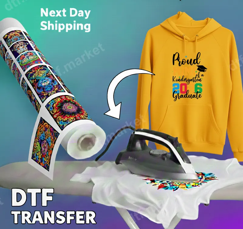 See allThe "Proud Mimi of a Kindergarten 2026 Graduate" DTF transfer is a heartwarming and vibrant design celebrating a significant early academic achievement. This ready to press transfer features a playful mix of script and bold block fonts in black, orange, green, and blue, topped with a small graduation cap icon. It captures the joyful spirit of a kindergarten graduation, making it a perfect statement piece for any proud grandmother. This high-quality direct to film transfer ensures a professional and long-lasting finish on your chosen garment. This design is specifically for grandmothers who want to proudly display their love and support for their kindergarten graduate in 2026. It's ideal for wearing to graduation ceremonies, family celebrations, school events, or even as everyday apparel. It also makes a thoughtful and personalized gift for any "Mimi" celebrating this special milestone, allowing them to create unique custom apparel for the big day and beyond. Applying this ready to press DTF transfer is simple and efficient. It adheres beautifully to a wide range of fabric types, including cotton, polyester, and various blends, offering versatility for your crafting projects. For best results, use a heat press at 300-325°F for 15 seconds with medium pressure, then peel cold. For those without a heat press, a household iron can also be used following similar temperature and pressure guidelines. Enjoy the convenience of a heat press design with absolutely no weeding required, saving you time and effort. Crafted with professional-grade DTF film, this iron on transfer boasts exceptional quality. The colors are incredibly vibrant and will remain crisp wash after wash without cracking or fading. The transfer process results in a soft-to-the-touch finish that feels integrated into the fabric, not like a bulky vinyl transfer. Its strong adhesive ensures a durable bond, making your personalized t-shirt transfer a cherished keepsake for years to come.