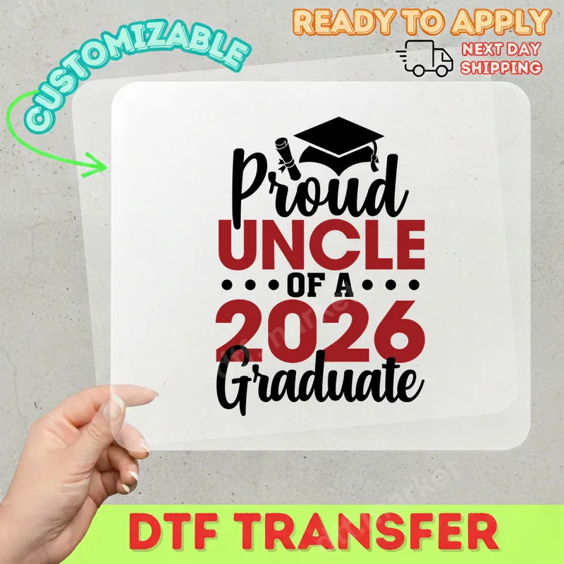 Proud Uncle 2026 Graduate DTF Transfer | Class of 2026 Graduation Design