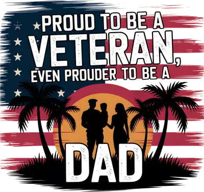 See allThis powerful and heartwarming DTF transfer celebrates the honor of military service and the joy of fatherhood. Featuring a distressed American flag background, the bold declaration 'PROUD TO BE A VETERAN, EVEN PROUDER TO BE A DAD' stands out prominently. Below, a serene silhouette of a military dad, mom, and child against a tropical sunset with palm trees adds a touching family element. This ready to press design combines patriotism, family love, and a rustic aesthetic, making it a truly meaningful piece for any proud veteran father. This inspiring heat transfer design is perfect for veteran fathers, active-duty military dads, or anyone who wants to honor their dual pride in service and family. It makes an exceptional gift for Father's Day, Veterans Day, Memorial Day, or birthdays for husbands, fathers, or grandfathers. Small apparel businesses and crafters will find this iron on transfer an excellent addition to their product line for creating unique, heartfelt patriotic and family-themed garments and accessories that resonate deeply with their customers. Applying this vibrant heat press transfer is quick and effortless. Suitable for cotton, polyester, cotton-poly blends, and even nylon, simply use a heat press at 300-325°F for 15 seconds with medium pressure, or apply with a household iron. There's no weeding required – just peel and press! It's ideal for creating custom t-shirts, cozy hoodies, sturdy tote bags, personalized pillow covers, or even unique denim jackets. For lasting durability, wash garments inside out and tumble dry on low heat. Our ready to press transfer ensures vibrant, full-color printing with exceptional detail, capturing every nuance of the distressed flag and intricate silhouettes. You'll appreciate the soft, flexible feel on your garment, free from the heavy, stiff texture often associated with vinyl transfers, and it's highly crack-resistant. Each direct to film transfer is meticulously printed on premium DTF film with a strong adhesive backing, guaranteeing professional-grade results that stand the test of time and wear.