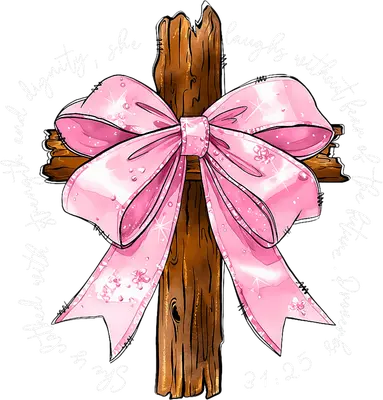 Proverbs 31:25 Cross with Pink Bow DTF Transfer | Strength & Dignity