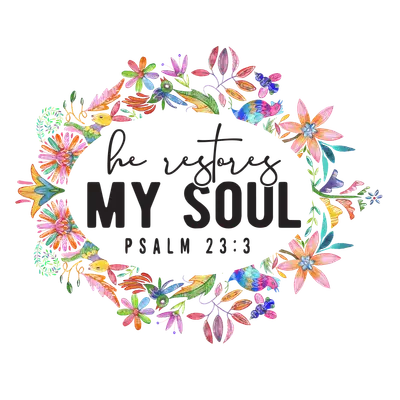 Psalm 23:3 'He Restores My Soul' Vibrant Floral DTF Transfer