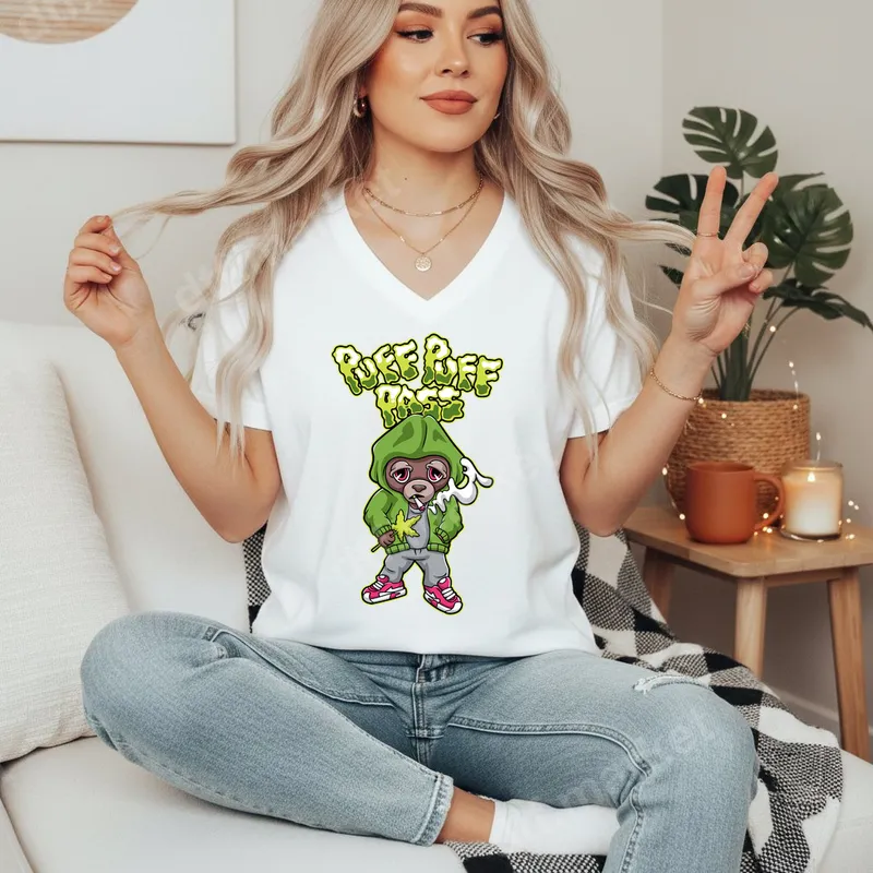 See allThe design features a cool, stylized monkey character sporting a vibrant green hoodie and trendy pink sneakers, holding a prominent cannabis leaf. Above the character, the playful phrase "PUFF PUFF PASS" is rendered in a bubbly, bright green font, adding to its edgy, urban vibe. This unique DTF transfer is an eye-catching statement piece, delivered ready to press for immediate application to your chosen apparel. This "Puff Puff Pass" monkey design is perfect for cannabis culture enthusiasts, streetwear fashion lovers, and anyone looking to express a relaxed, playful attitude. It's an ideal choice for 4/20 celebrations, casual gatherings, music festivals, or simply as a unique gift for friends who appreciate clever, edgy humor. Create custom apparel that stands out and sparks conversation. Our direct to film transfers are incredibly versatile, adhering beautifully to a wide range of fabrics including cotton, polyester, and various blends. Applying this heat press design is a breeze: use a heat press at 300-325°F for 15 seconds with medium pressure, or follow our easy instructions for a household iron. Best of all, these high-quality iron on decals require no weeding, saving you time and effort in your customization projects. Experience premium quality with our professional-grade DTF transfers. Each heat transfer boasts incredibly vibrant colors, crisp details, and a soft, flexible feel that resists cracking and peeling, even after multiple washes. Crafted from durable DTF film with strong adhesive properties, this ready to press transfer ensures your designs look fantastic and last for ages on any garment, from t-shirts to hoodies and bags.