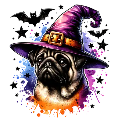 Pug in Witch Hat DTF Transfer | Spooky Halloween Dog Design