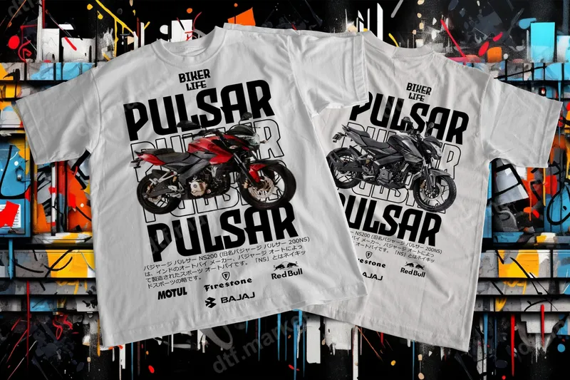 See allEmbrace the thrill of the ride with this dynamic 'Pulsar Biker Life' DTF transfer. Featuring a detailed graphic of a sleek Pulsar NS200 motorcycle, flanked by bold 'PULSAR' typography and the declaration 'BIKER LIFE', this design captures the essence of motorcycle enthusiasm. Prominently displaying sponsor logos like Motul, Firestone, Red Bull, and Bajaj, it’s a tribute to the biking culture. This high-quality direct to film transfer is ready to press, ensuring vibrant colors and crisp details for your apparel. This striking heat press transfer is ideal for motorcycle riders, biking club members, and anyone who lives and breathes the open road. It makes an excellent gift for birthdays, Father's Day, or just because, for the biker in your life. Perfect for customizing gear for motorcycle rallies, meetups, or simply showcasing your passion on everyday casual wear. Elevate your wardrobe with a design that speaks to the heart of the biker community. Applying this iron on decal is straightforward and professional. Our heat press ready transfers work seamlessly on a wide range of fabrics, including cotton, polyester, and various blends. For best results, use a heat press at 300-325°F for 15 seconds with medium pressure, followed by a cold peel. A household iron can also be used with careful application. Forget the hassle of weeding vinyl transfer; our DTF transfers are printed, pressed, and perfect. Experience superior quality with our apparel transfers. Each design is crafted using professional-grade DTF film, resulting in incredibly vibrant colors that pop and crisp lines that maintain their integrity wash after wash. The transfers are crack-resistant, durable, and offer a soft hand feel, ensuring comfort and longevity. Create custom t-shirts, hoodies, and jackets that look professionally made and stand the test of time.