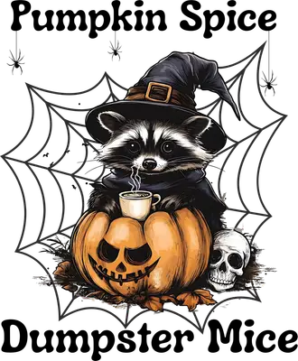 Pumpkin Spice Dumpster Mice DTF Transfer | Witch Raccoon Halloween Design