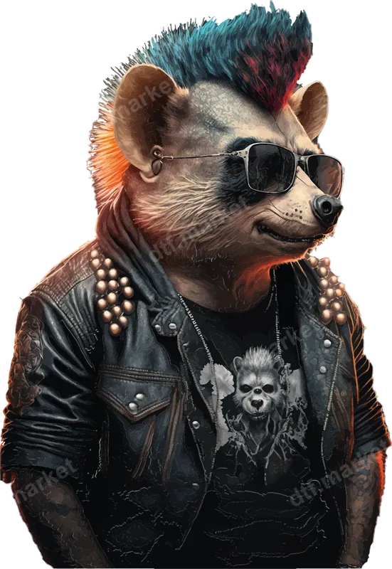 Punk Rock Badger DTF Transfer - Mohawk, Shades & Studded Jacket