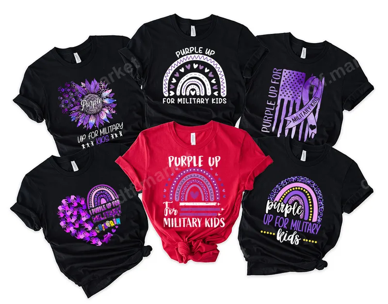 See allThese heartwarming designs celebrate "Purple Up For Military Kids," honoring the strength and resilience of children in military families. Each unique graphic features vibrant purple hues, incorporating elements like sunflowers, rainbows, American flags, and handprints to symbolize unity and support. This collection of DTF transfers is perfect for creating impactful apparel. Simply choose your favorite design, and it arrives ready to press onto your chosen item, making customization effortless and fun. These heat transfer designs are ideal for military parents, children, spouses, and extended family members looking to proudly display their support during Military Child Month (April) or year-round. They also make thoughtful gifts for teachers, school staff, and community members who want to show appreciation for the unique sacrifices of military youth. Perfect for school events, support group gatherings, or simply for everyday wear to spread awareness and positivity. Applying these iron on transfers is simple and hassle-free. Our premium ready to press transfers work beautifully on a wide range of fabrics, including cotton, polyester, and various blends. For best results, use a heat press at 300-325°F for 15 seconds with medium pressure, then peel cold. A household iron can also be used with careful application. Enjoy the convenience of no weeding required, allowing you to create professional-looking items quickly. Experience superior quality with our professional-grade DTF transfers. Each apparel transfer boasts incredibly vibrant colors that pop, along with excellent durability, resisting cracking and fading wash after wash. The prints are soft to the touch, ensuring maximum comfort when worn. Crafted using high-quality DTF film and strong adhesive, these designs provide a long-lasting, retail-quality finish for all your custom creations.