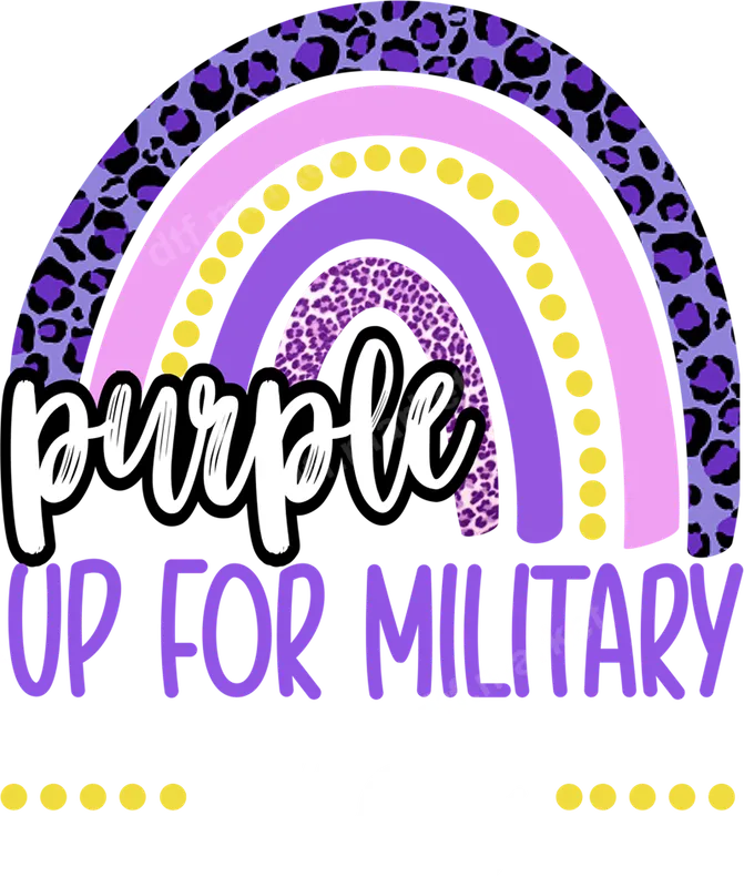 See allShow your unwavering support for military children with this vibrant "Purple Up For Military Kids" DTF transfer. This eye-catching design features a cheerful rainbow in shades of purple and pink, adorned with trendy leopard print details and cheerful yellow polka dots. The bold white script for "Purple" layered over the clear purple block letters for "UP FOR MILITARY KIDS" makes a powerful statement. This high-quality DTF transfer is ready to press, making it easy to create custom apparel. This design is perfect for military families, active service members, veterans, and anyone who wants to acknowledge and appreciate the resilience of military children. It's ideal for celebrating the Month of the Military Child in April, military appreciation events, school functions, or simply for everyday wear to show solidarity. Create thoughtful gifts for military spouses, parents, or teachers who support military kids in their community. Applying this heat press transfer is straightforward. It works seamlessly on a wide range of fabrics, including cotton, polyester, and various blends. For best results, use a heat press at 300-325°F for 15 seconds with medium pressure, then peel cold. A household iron can also be used with careful application. Best of all, there's no weeding required, saving you time and effort. Crafted from professional-grade DTF film, this iron on transfer ensures vibrant colors that resist cracking and fading, even after multiple washes. The print is soft to the touch and boasts a strong adhesive for long-lasting wear, transforming plain garments into meaningful statements of support. Elevate your apparel with this durable and beautiful apparel transfer.