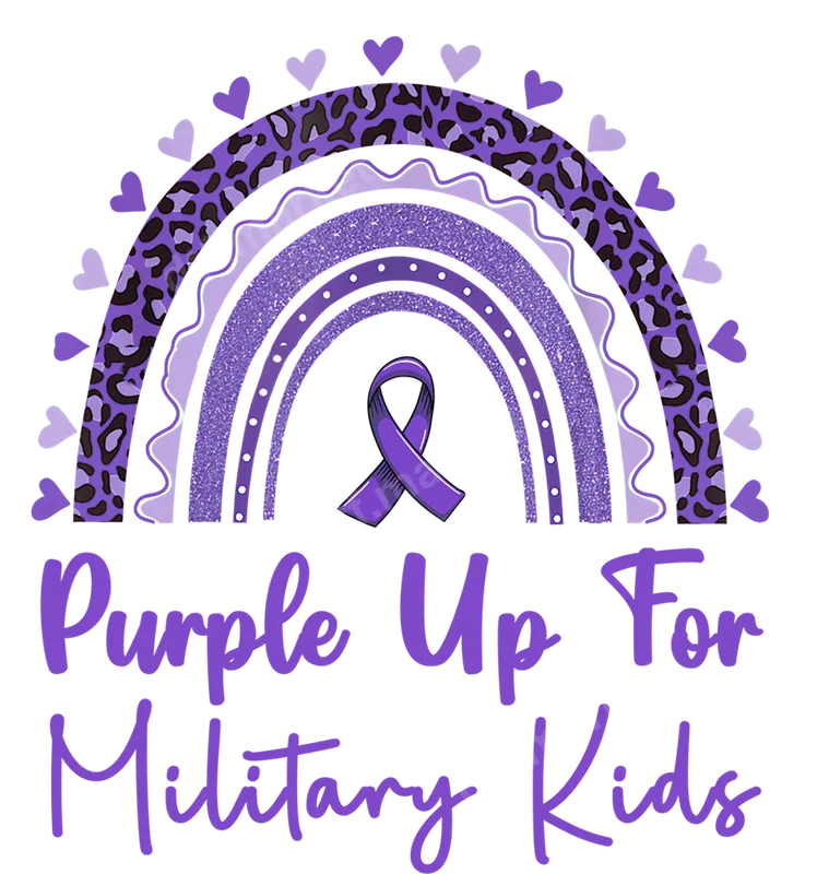 See allCelebrate and support military children with this inspiring 'Purple Up For Military Kids' DTF transfer. This vibrant direct to film transfer features a beautiful purple rainbow design, complete with a trendy leopard print arch, playful hearts, and a prominent purple awareness ribbon. It's a powerful and heartwarming way to show solidarity, making it a perfect ready to press transfer for expressing appreciation for our military families. This unique design is ideal for military spouses, parents, teachers, and anyone who wants to acknowledge the strength and resilience of military children. Perfect for Month of the Military Child events, school functions, homecoming celebrations, deployment support, or simply as an everyday statement. It makes a thoughtful gift for military families or a special custom shirt for a military child to wear with pride. Applying this durable heat transfer is simple and straightforward. It adheres beautifully to a wide range of fabrics, including cotton, polyester, and cotton/poly blends, making it versatile for various apparel projects. For best results, use a heat press at 300-325°F for 15 seconds with medium pressure, or follow instructions for a household iron. Enjoy a professional finish without the hassle of weeding, unlike traditional vinyl transfers. Our premium DTF transfers are crafted for exceptional quality, delivering vibrant colors and crisp details that truly stand out. The advanced film ensures a soft hand feel on your garment, incredible stretchability, and superior crack resistance for long-lasting wear. Each ready to press design is made using professional-grade DTF film and inks, guaranteeing a strong adhesive bond and a fantastic finish for your custom apparel.