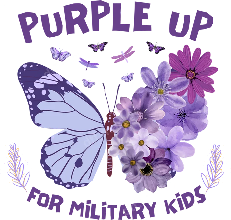 Purple Up Military Kids Butterfly Floral DTF Transfer | Support Military Children