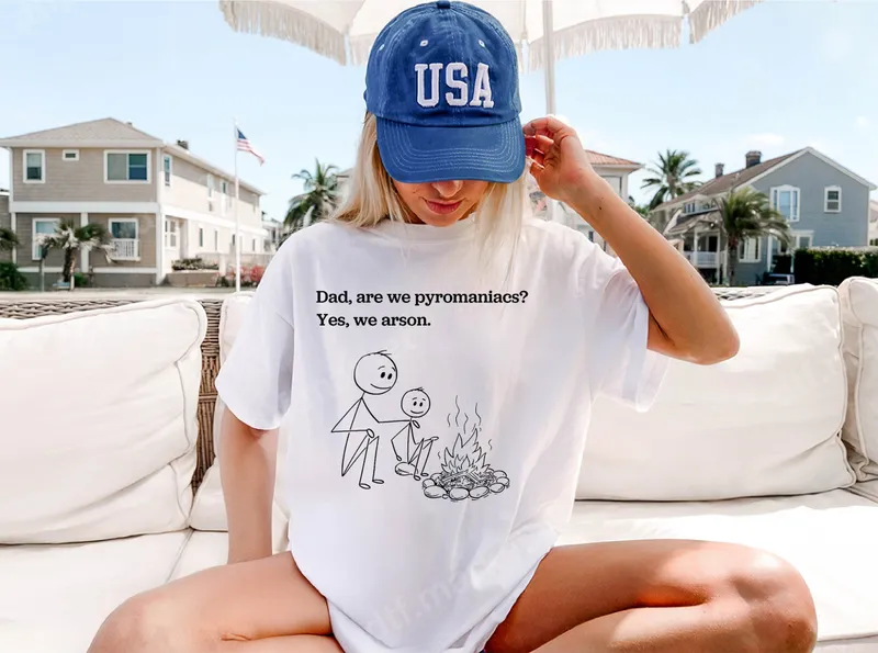 See allUnleash some mischievous humor with our "Pyromaniac Arson" DTF transfer, featuring a classic stick figure dad joke scene. This ready to press design depicts a dad and child around a roaring campfire, with the witty dialogue, "Dad, are we pyromaniacs? Yes, we arson." It's a perfectly punny and playful addition to any casual wardrobe or a great conversation starter. This funny DTF transfer is ideal for dads, grandpas, or anyone with a dry sense of humor and a love for clever puns. It makes an excellent gift for Father's Day, birthdays, camping trips, or just because. Surprise a friend who enjoys a good laugh or treat yourself to a unique apparel transfer that's sure to get smiles. Applying this heat press transfer is simple and efficient. Our transfers work seamlessly on a variety of fabrics including cotton, polyester, and blends. For best results, use a heat press at 300-325°F for 15 seconds with medium pressure, then peel cold. You can also use a household iron, ensuring even pressure. No weeding or intricate layering required, making it much easier than traditional vinyl transfer methods. Experience professional-grade quality with vibrant colors and a soft-to-touch finish that stands the test of time. Our direct to film transfer technology ensures excellent crack resistance, wash durability, and strong adhesion. Create custom apparel quickly and easily with this high-quality heat press design, turning ordinary garments into extraordinary, personalized pieces.