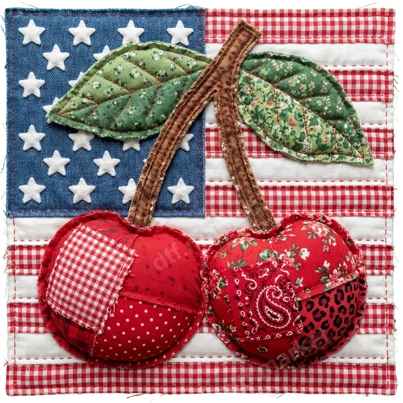 Quilted Cherries American Flag DTF Transfer | Rustic Americana