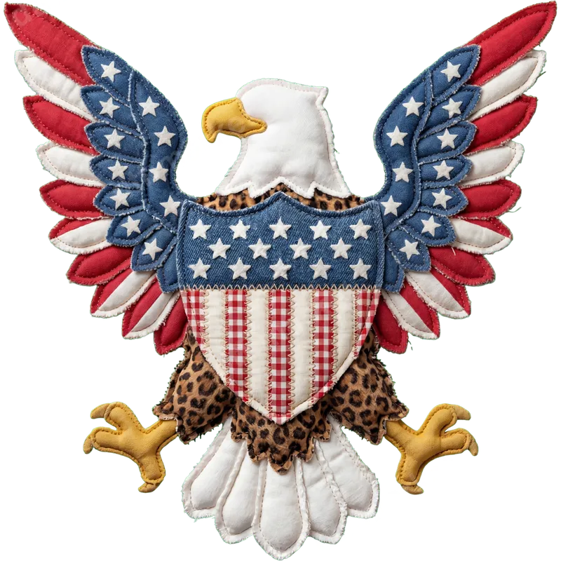 Quilted Patriotic Eagle DTF Transfer | Americana Flag & Leopard