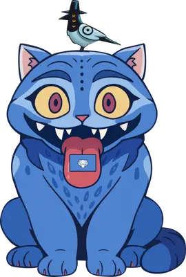 Quirky Blue Cat DTF Transfer with Top Hat Bird & Meta Tongue