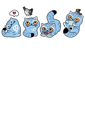 Quirky Blue Cat Expressions DTF Transfer | Funny Cartoon Feline Iron On