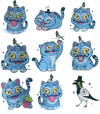 Quirky Blue Cat & Raven DTF Transfer Pack