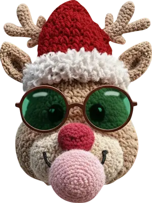 Quirky Crocheted Reindeer DTF Transfer - Santa Hat & Green Glasses