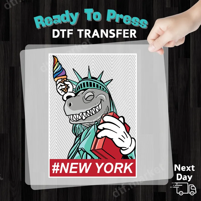 See allThis unique DTF transfer features a hilariously reimagined Statue of Liberty, with a grinning dinosaur head sporting her iconic crown. A vibrant rainbow ice cream cone replaces the torch, while a bold red book is clutched in the other hand. A stylish grey chevron background frames the image, with a prominent red banner proclaiming "#NEW YORK" at the bottom. This ready to press design is perfect for adding absurd humor and city pride to any wardrobe. This New York-inspired heat press transfer is ideal for Gen Z trendsetters, NYC locals, and tourists seeking an edgy souvenir. It makes a fantastic gift for friends who love quirky art, pop culture twists, or streetwear aesthetics. Perfect for everyday wear, festivals, or adding a conversation starter to casual outings. Infuse your apparel with "brainrot" humor and celebrate the Big Apple uniquely. Our direct to film transfers are incredibly versatile, ready for application on cotton, polyester, and various fabric blends. Applying this heat press design is simple: use a heat press at 300-325°F for 15 seconds with medium pressure, then perform a cool peel. For home users, a household iron can also achieve great results. Forget tedious weeding; this heat transfer film is ready to press straight onto your favorite garment effortlessly. Experience the superior quality of our custom transfers. Each DTF transfer boasts incredibly vibrant, true-to-color hues that pop on any garment. Engineered for durability, our designs are crack-resistant and maintain integrity wash after wash. The print is soft to the touch, seamlessly blending with the fabric for comfortable wear. Crafted with professional-grade DTF film and strong adhesive, you can trust in a lasting, high-quality application every time.